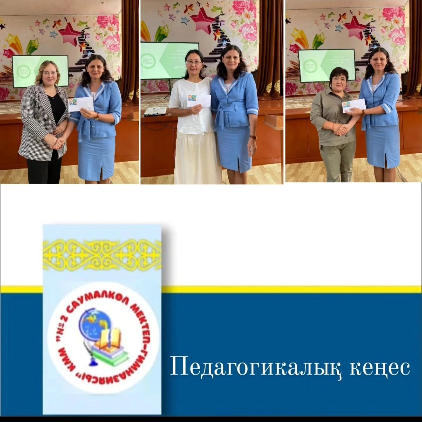 Педагогикалық кеңестің соңында Е. Коровина, кәсіподақ ұйымының төрайымы, ұжымды Еңбек шартымен таныстырып, кітапханашы К. Сатиеваны мерейтойымен құттықтап, бүлдіршіндері 1-сыныпқа баратын әріптестерін құттықтады.