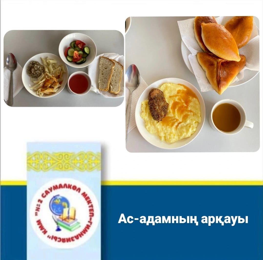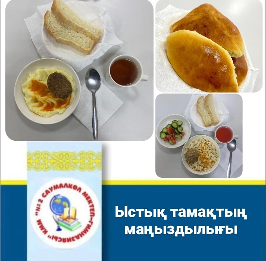 Тағам-оқушыларға қажетті заттар және энергия көзі. Пайдалы және сапалы тағамды тұтыну-өсіп келе жатқан ағзаның дамуына аса маңызды. №2 Саумалкөл мектеп-гимназиясының оқушылары 100% ыстық тамақпен қамтамасыз етілген.